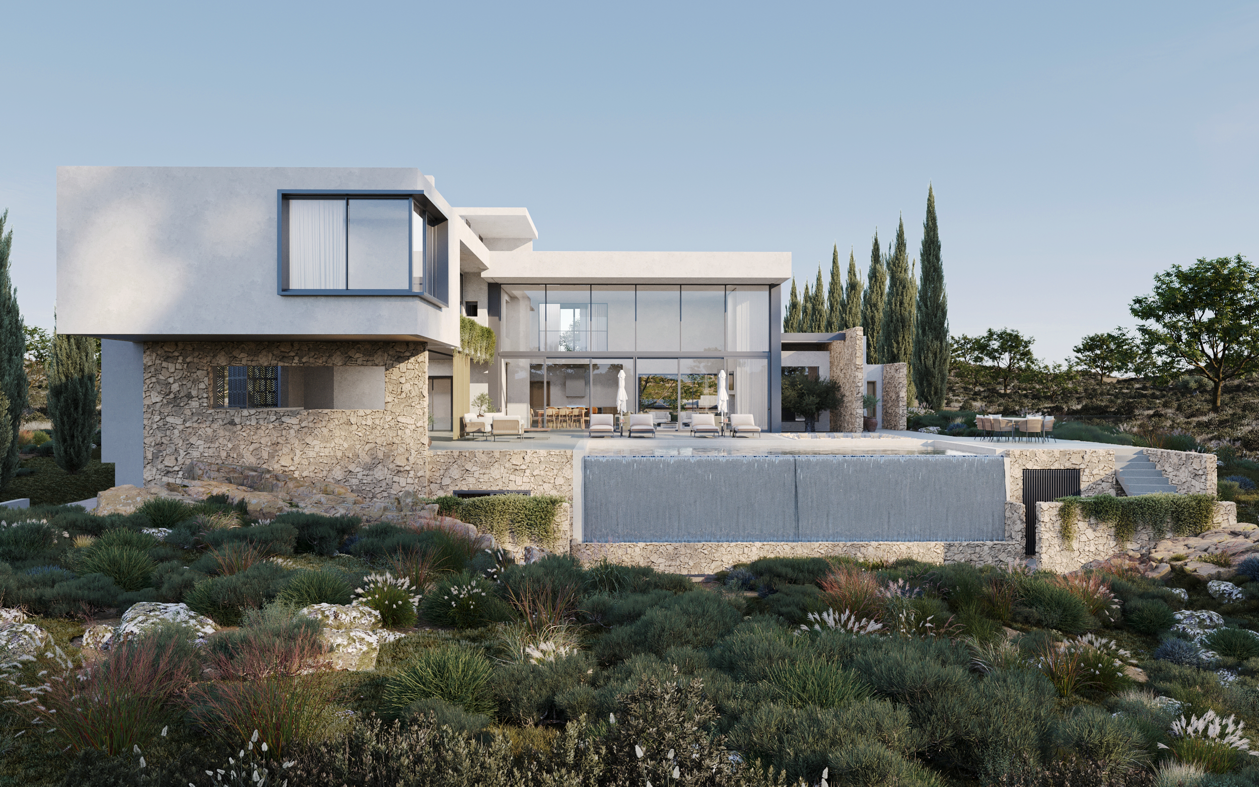 These visualisations focus on showing the external facade, landscape, and overall ambience of the project. They allow potential buyers to observe the structure within its surrounding environment.